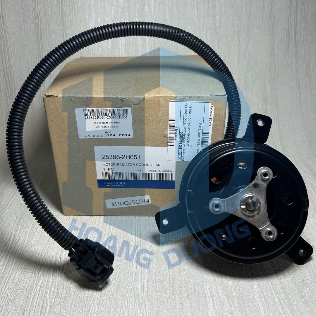 Mô tơ quạt két nước mã 253862H050 được sản xuất bởi hãng HCC chính hãng tại Hàn Quốc dùng cho các dòng xe Huyndai và KIA.