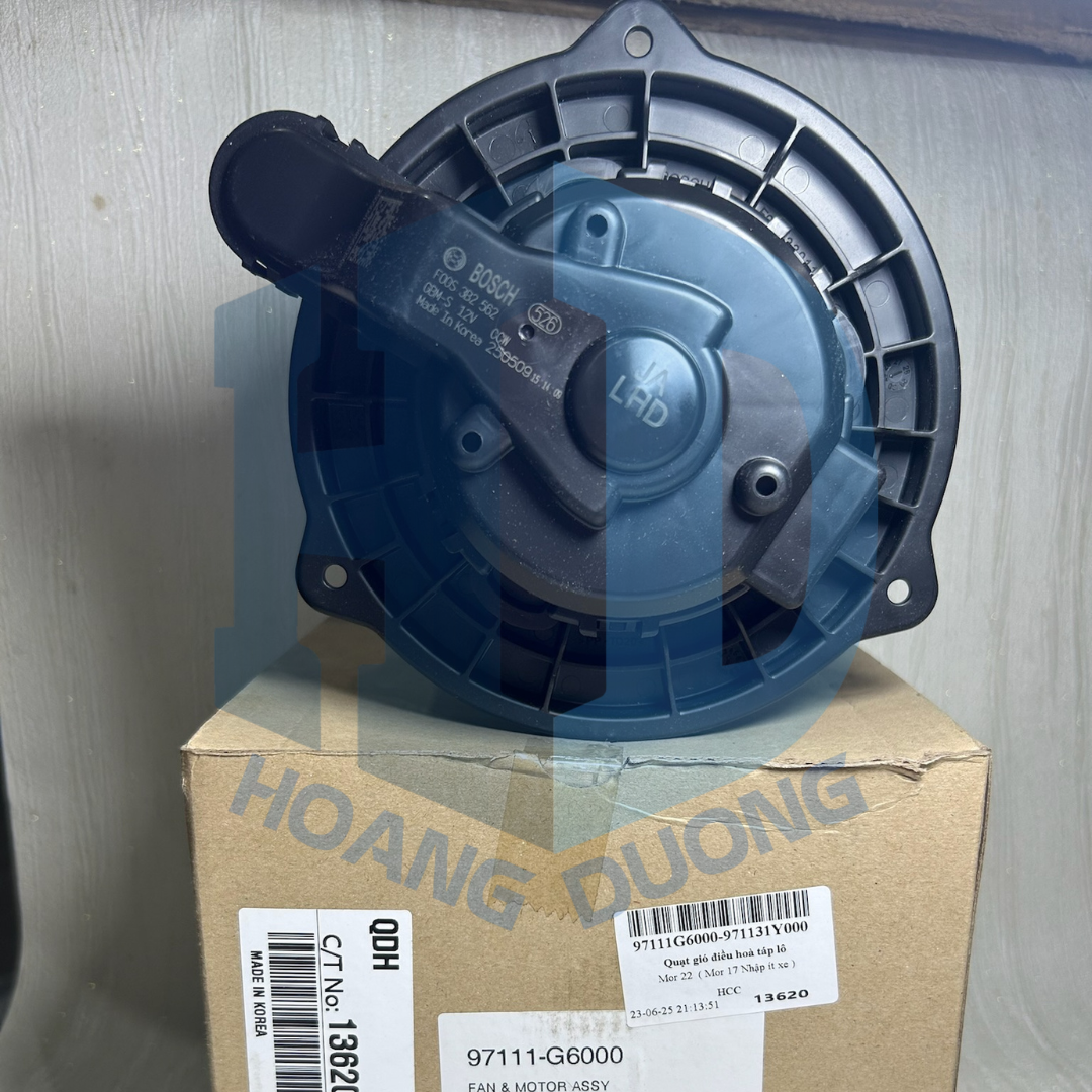 Quạt gió điều hoà táp lô mã 97111G6000 được sản xuất bởi hãng HCC chính hãng tại Hàn Quốc dùng cho các dòng xe Huyndai và KIA.